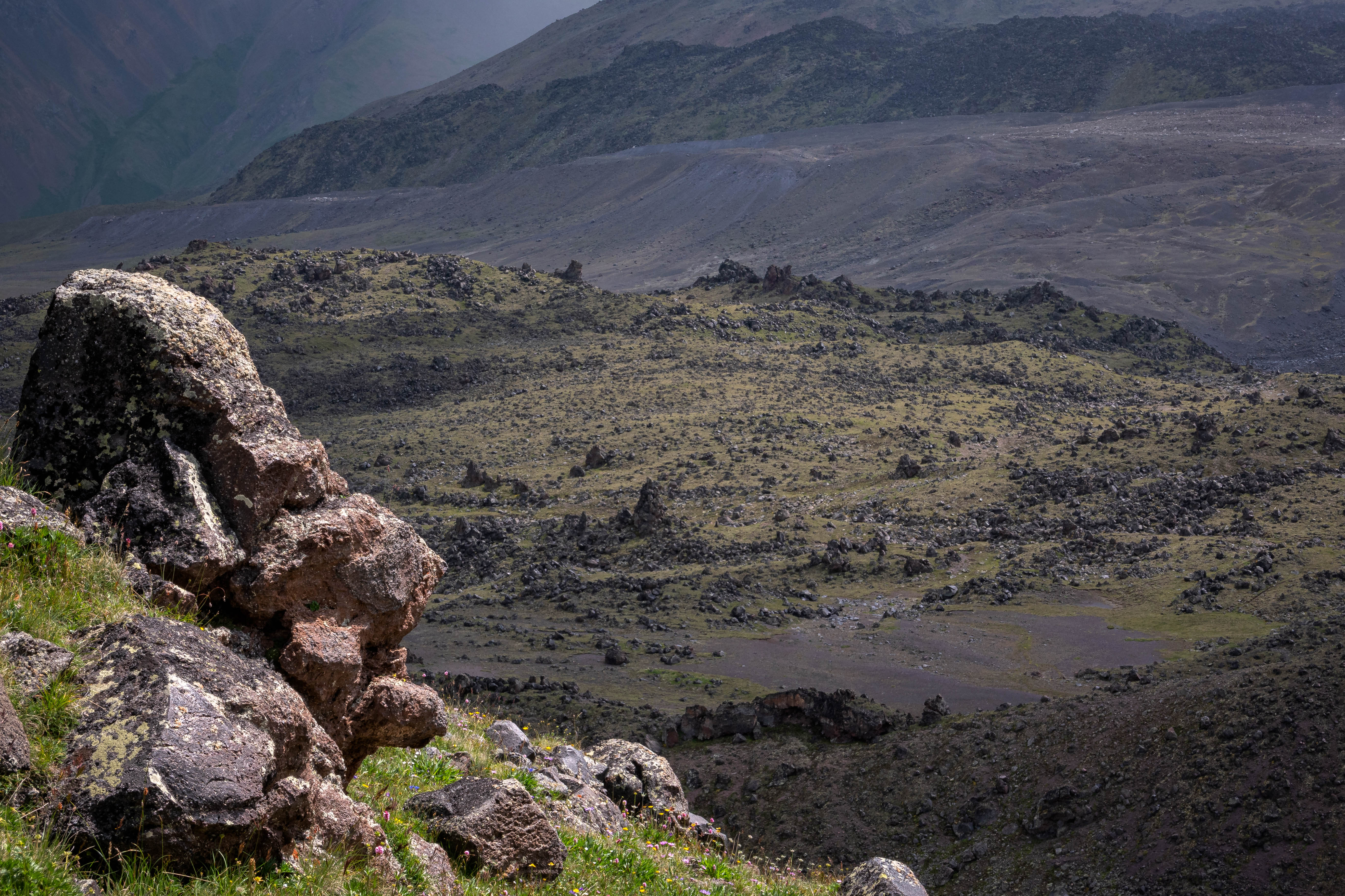 counter-clockwise around Mingi-Tau, “the eternal snow mountain”, dormant volcano of the Greater Caucasus