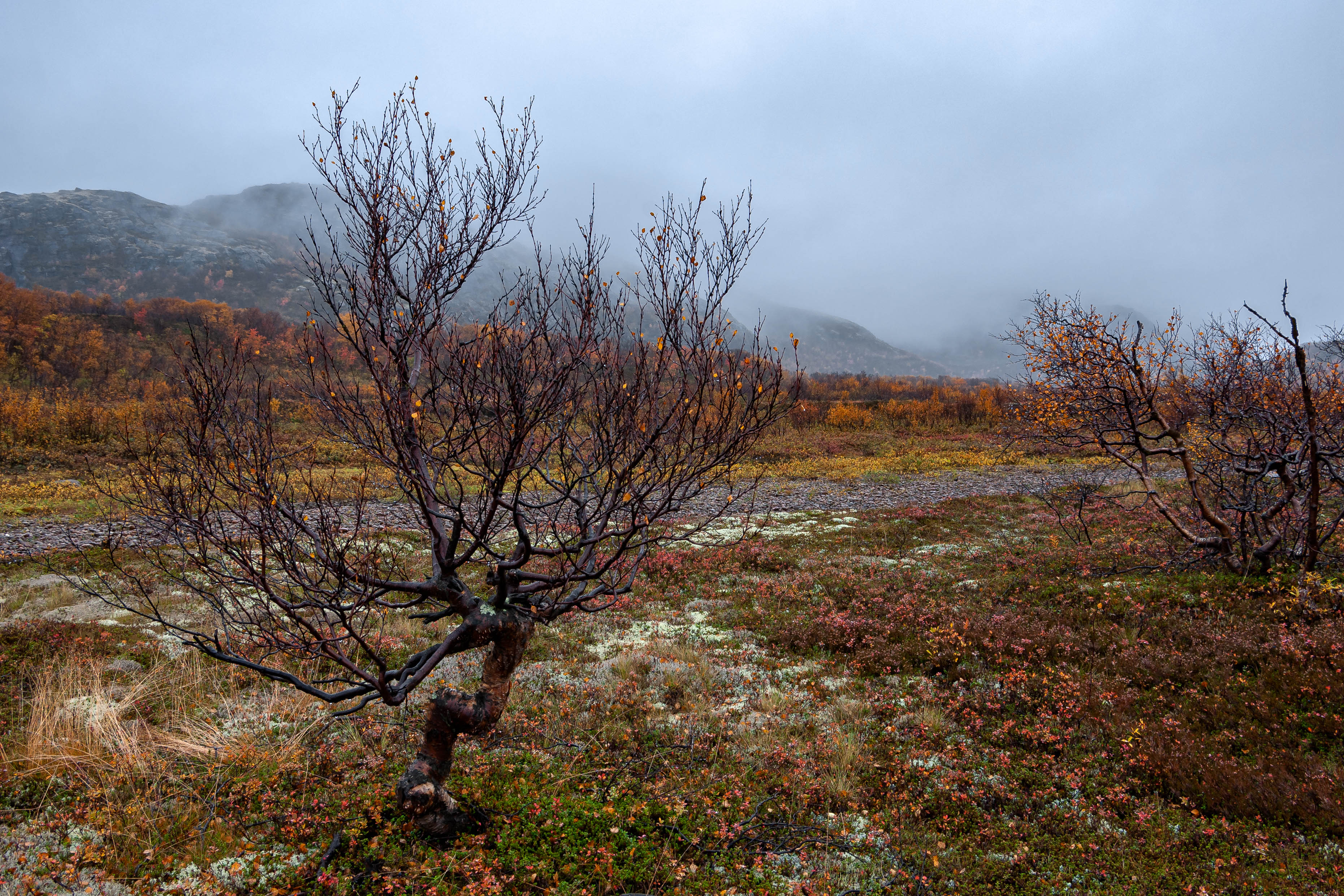Teriberka September 2010 “flying stones” and tundra autumn quietude by the Arctic ocean between Teriberka and Klimkovka low tidesealKildin shrouded in mist